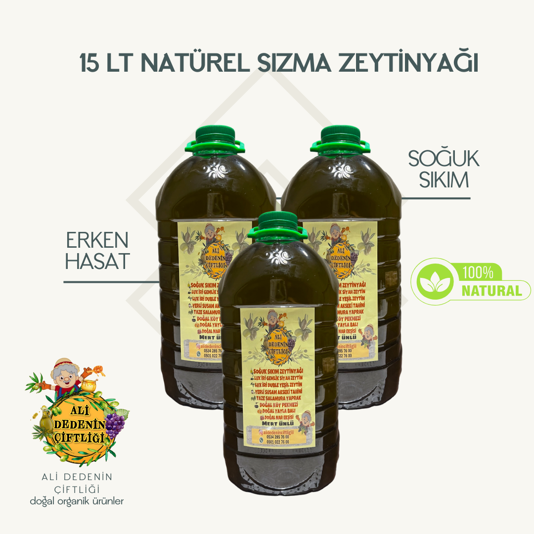 Ali Dedenin Çiftliği'nden sofralarınıza gelen Ayvalık soğuk sıkım zeytinyağımız, tamamen doğal yöntemlerle üretilmiş, katkısız ve yüksek besin değerine sahip özel bir zeytinyağıdır.